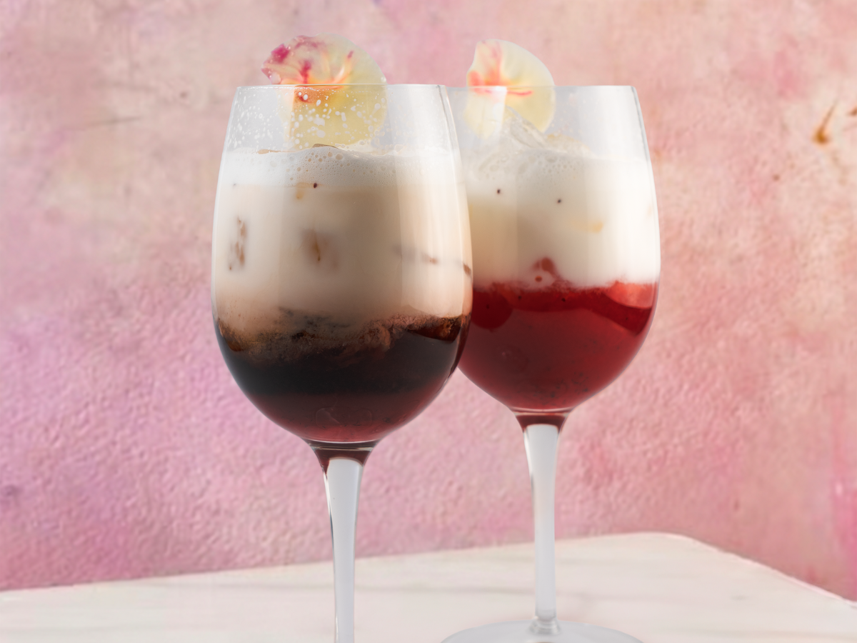 Fall in love with our Saint Berry Cocktail: a dreamy blend of Kahlua, strawberry puree, and milk ($12.00 | $10.00 non-alcoholic).