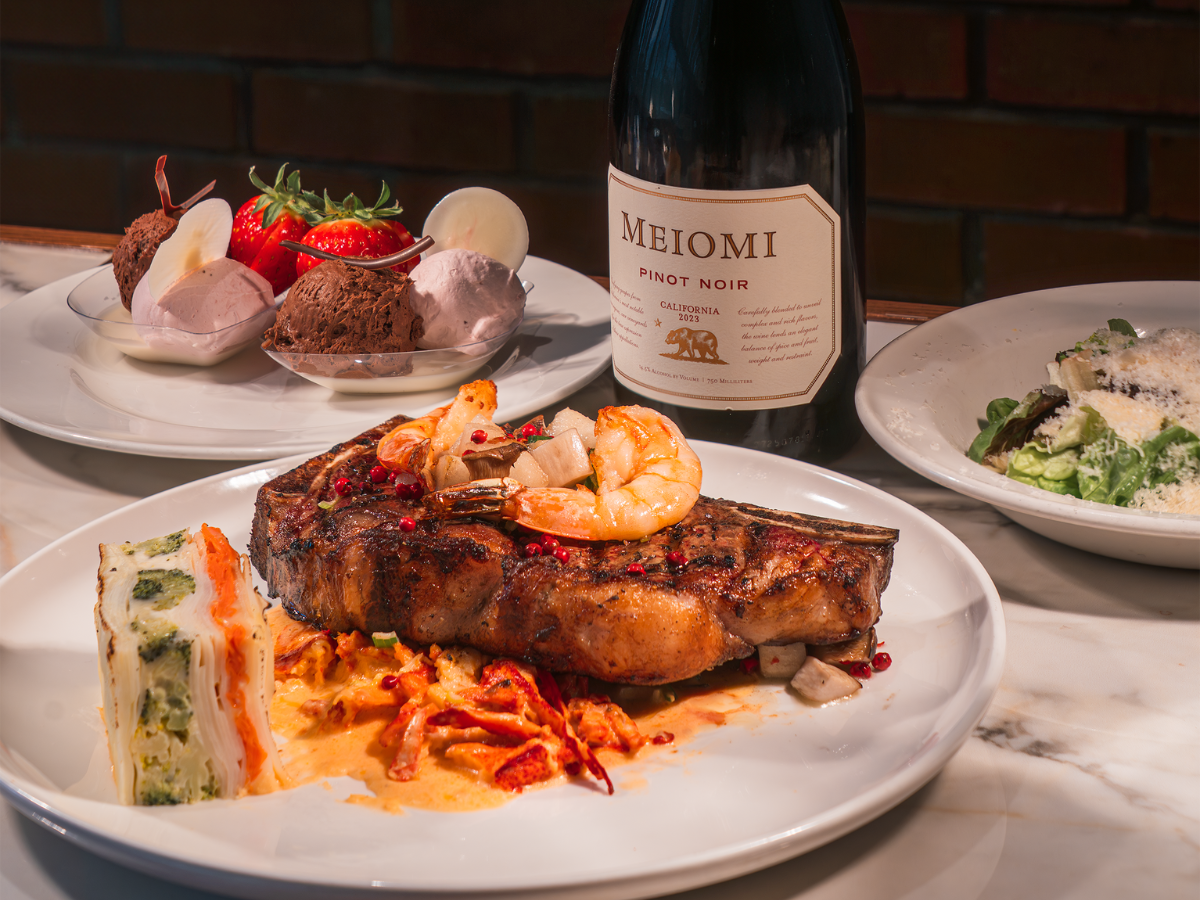 Make it a date night at Greenstreet with our special Course Menu for Two ($75), featuring a 20oz bone-in New York Strip with lobster cream sauce, shrimp, potato gratin, salad, and a sweet Valentine's mousse duo to finish.