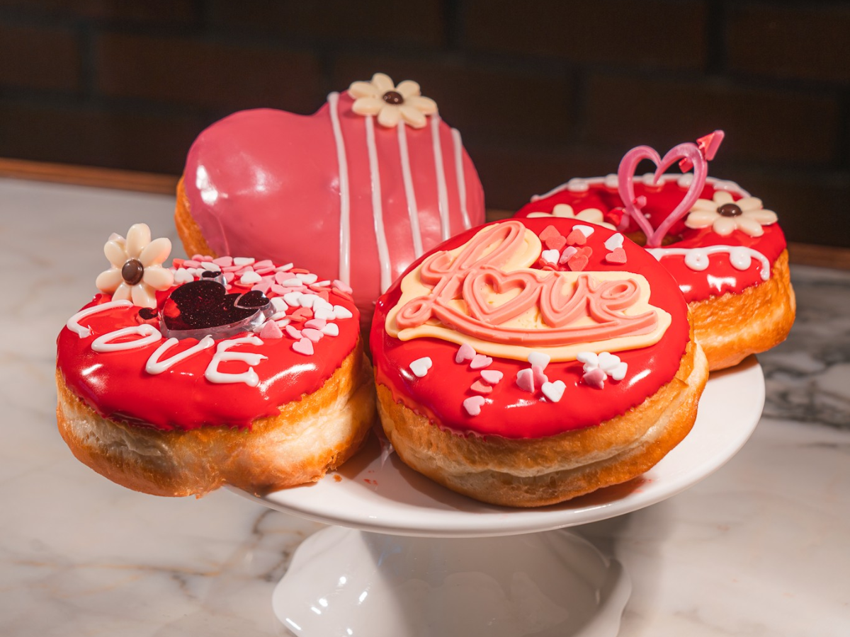 Indult in festive Valentine's themed donuts, baked fresh and perfect for sharing (Regular $2.50 | Filled $3.50).