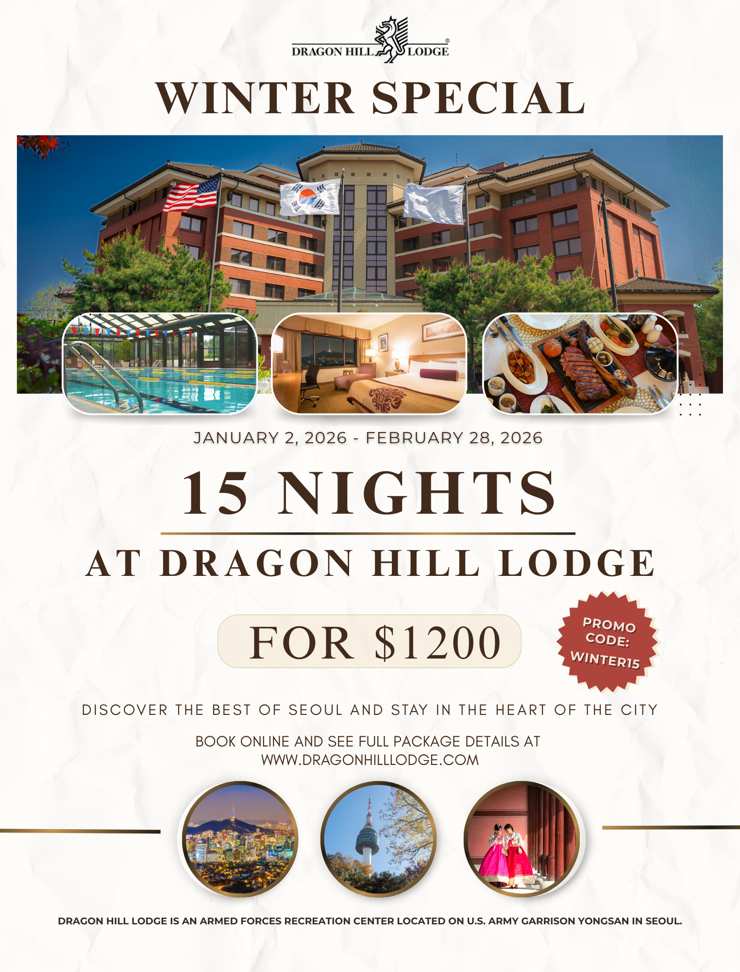 Make Dragon Hill Lodge your home away from home this winter with our exclusive 15-Nights Winter Special package, available for stays between January 2 and February 28, 2026. Designed for those looking for comfort, convenience, and exceptional value while exploring the exciting city of Seoul, this long-stay offer lets you enjoy a peaceful escape at the unbeatable rate of just $80 a night.