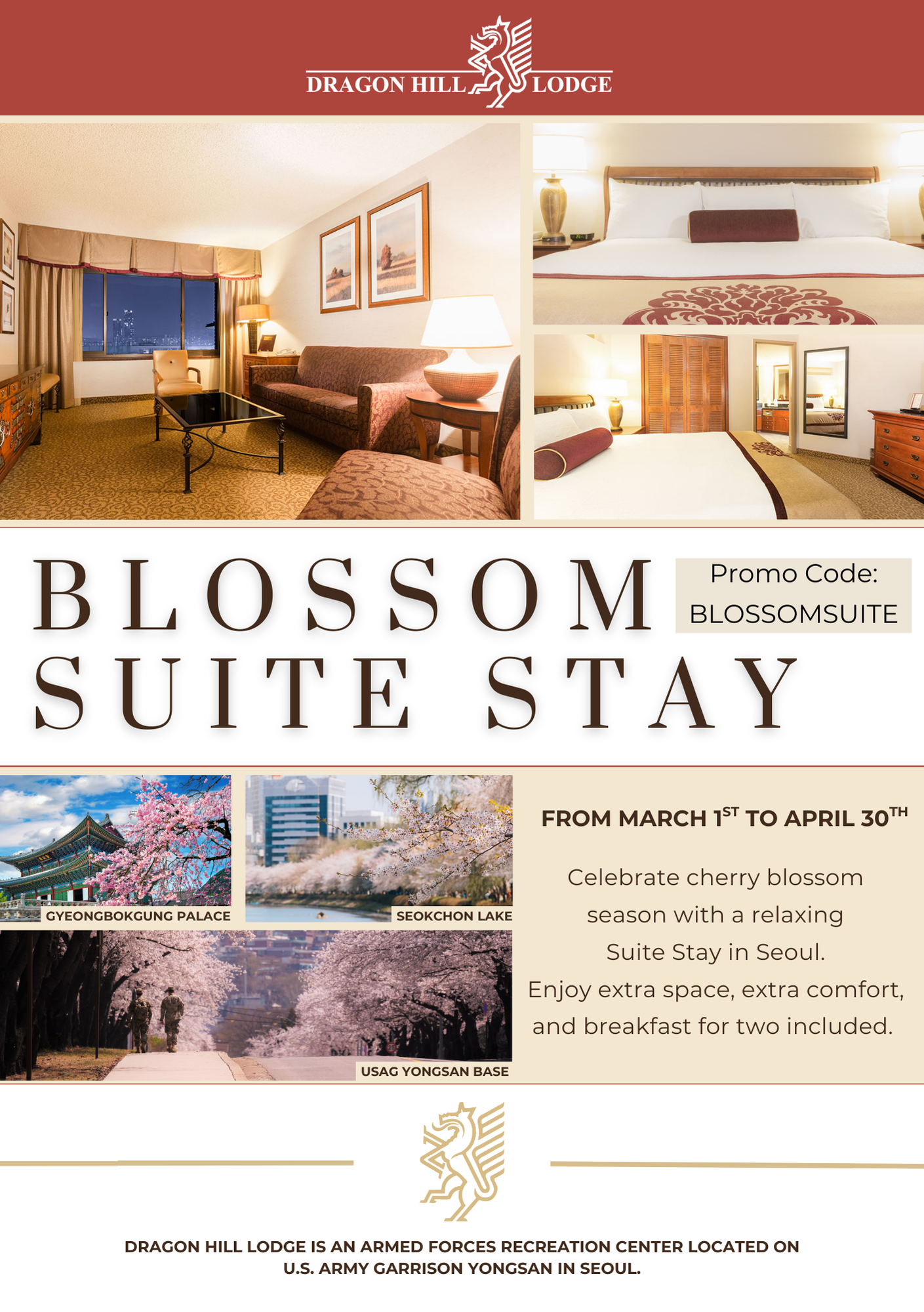 Already booked a standard room? Ask our Front Desk about upgrading to the Blossom Suite Stay for any night in March or April (weekends and holidays included).