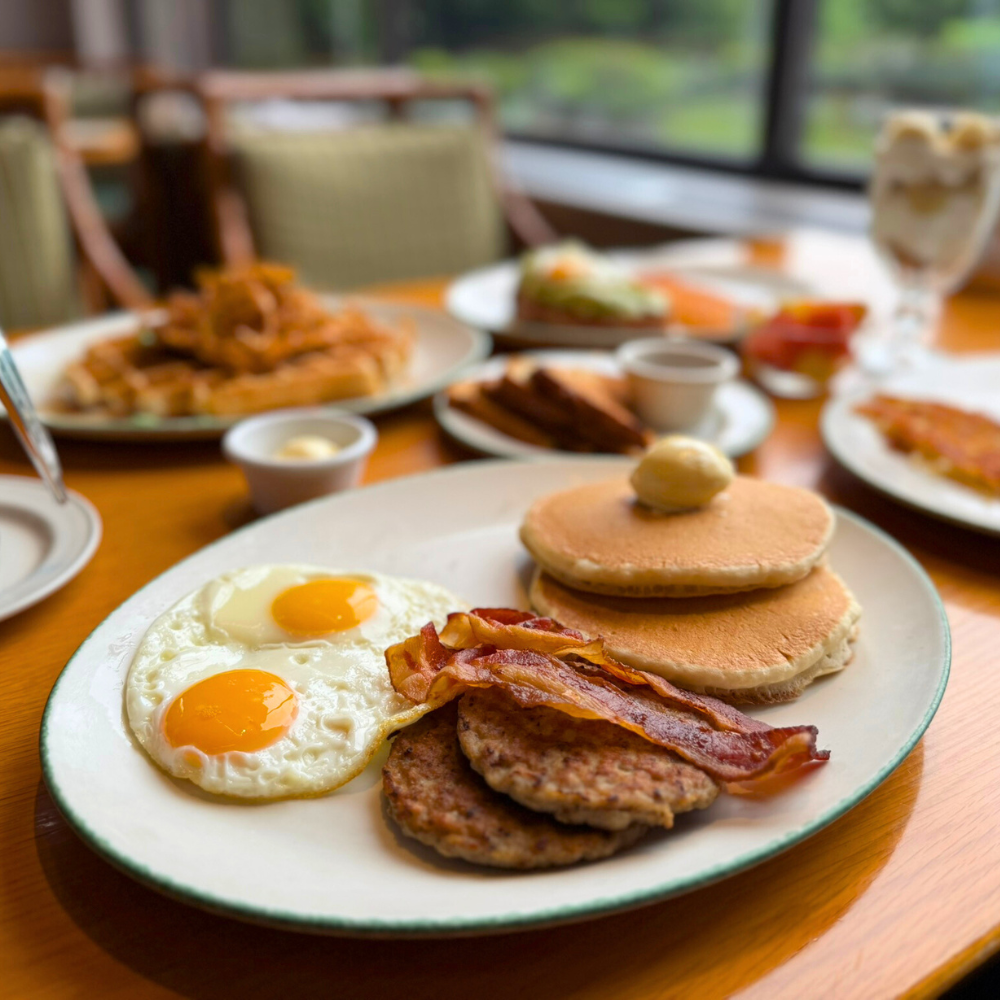 Start each weekday morning with a complimentary Dragon Hill Lodge breakfast for two, featuring all your American favorites, including pancakes, eggs benedict, biscuits and gravy, and even avocado toast.